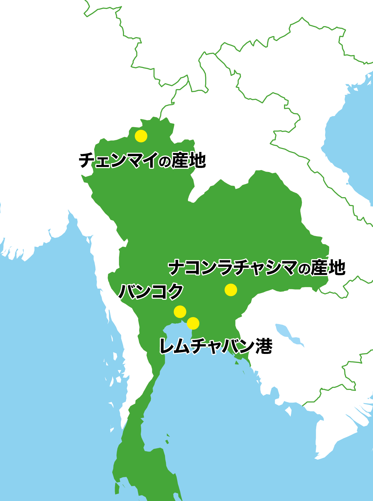 現在、イサーン地方(ナコンラチャシマ)やチェンマイでの生産拡大を進めています。